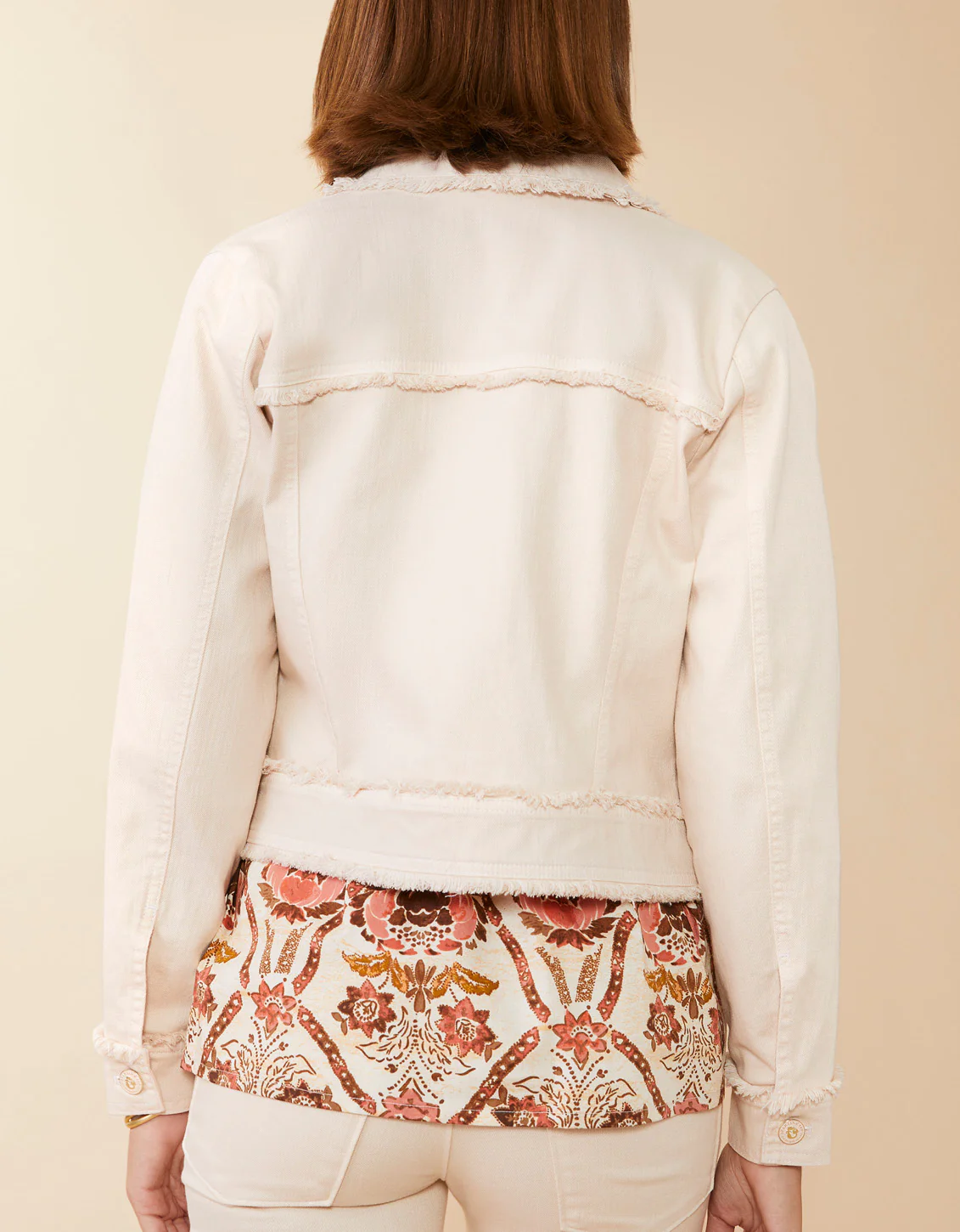 Wear our Blake Denim Jacket all year long. Front patch pockets and flirty fringe give textured style and functionality to this denim jacket that layers perfectly. Wear across collections as this neutral women’s stretch denim jacket playfully pairs with bold prints to keep your look balanced.Â