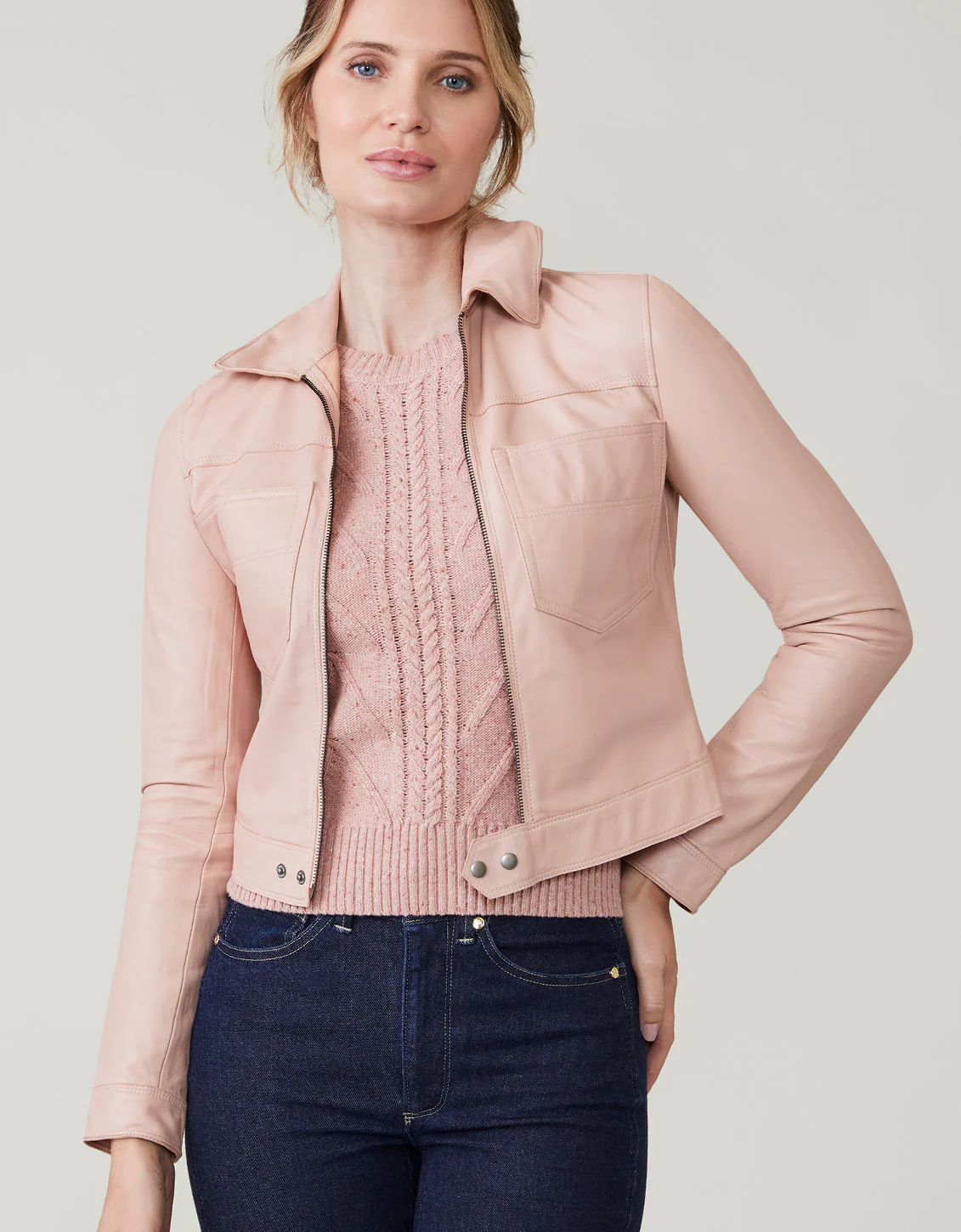 Layer on the luxury in exceptionally soft, unlined, premium washed lambskin leather jackets - the effortless way to transition from one season to the next. This petal pink leather jacket ups your season's style.