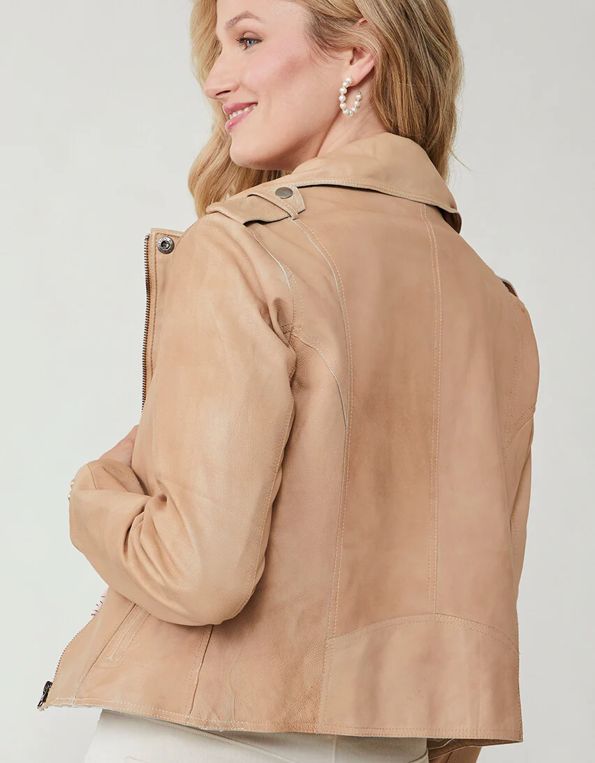 Layer on the luxury in exceptionally soft, unlined, premium lambskin leather jackets - the effortless way to transition from one season to the next. This neutral jacket ups your Fall style.